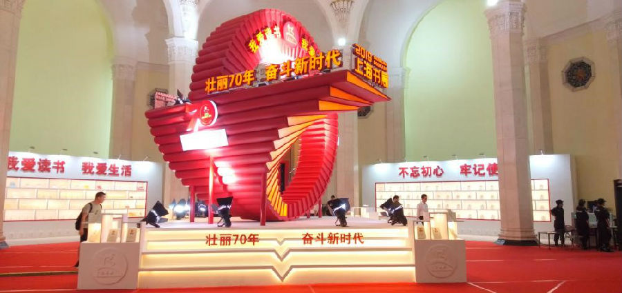 直到14日书展开幕了,作为志愿者必须早些到岗帮助出版社的老师做最后的准备工作,进入中央大厅,眼前的“壮丽70年 奋斗新时代”的红色标志物最引人注目,随即映入眼帘的就是两旁的小字“我爱读书我爱生活”“不忘初心 牢记使命”,给书展增添了更深的韵味!