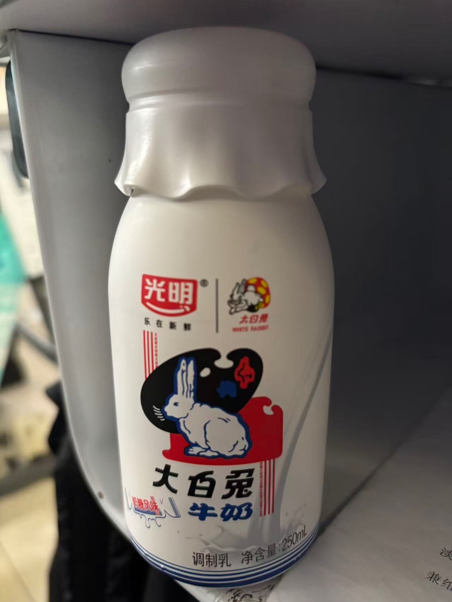 瓶身印着经典的大白兔图案,搭配光明的品牌标识,复古又亲切。作为调制乳,口感比纯牛奶多了几分香甜,却又保留了牛乳本身的质感,喝起来不觉得厚重,反而格外顺口。无论是早餐搭配面包,还是课间当作小饮品,都能带来满满的幸福感。