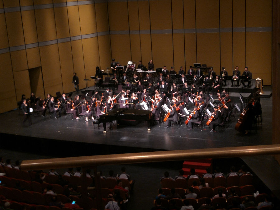 经过片刻的等待,音乐会准时开始。环顾四周,场内已座无虚席。灯光一暗,主持人缓缓走上台来,向我们介绍了上海学生交响乐团和上海城市交响乐团的辉煌成就。