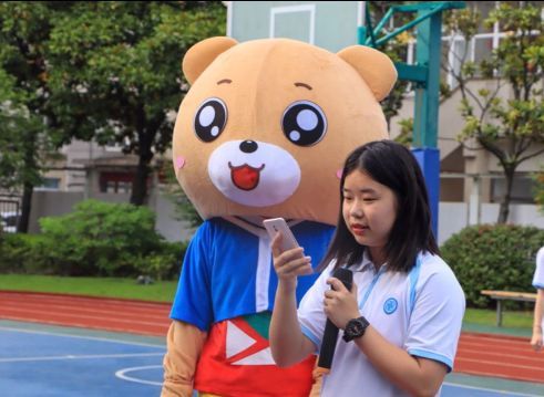 期间可爱的易班熊游走在各个公益展台和游戏点之间,被同学们抢着合影留念,熊熊摆出憨态可掬的姿势,配合同学们的动作,时不时引起哄堂大笑。