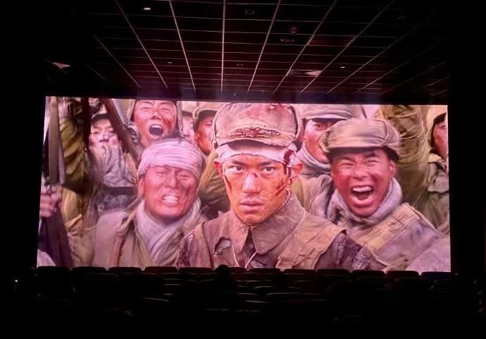 电影讲的是一个震撼人心的故事——抗美援朝。此时电影院人山人海,座无虚席。我和妈妈直接被观众“挤”到了角落里的座位上,看来,这部电影很受欢迎。现在来比一比美国军队和志愿军军队。当时,美国的钢产量是中国的140倍,美国的战斗机密密麻麻地在空中飞行,像一排排巨型的大雁,让人看了胆战心惊。坦克就很霸道了,在凹凸不平的路上横冲直撞,像一个个庞大的`推土机。这么厉害的武器最终却输给了武器落后只有小米加步枪和几十门大炮的中国志愿军。电影中有不少让我感动的画面。比如,战士们为了躲避美国的飞机,躺在死人堆中装死人,不料美国的战斗机在空中几个来回找不到一个活人,竟然打赌比谁射击的死人多,这下子可牺牲了不少战士,真是令人又气又恨。还有战士们被冻成了“冰雕”,在雪地里一动不动。他们的脸上、眉毛上、帽檐上都是冰雪,直到生命结束的时候都依然保持着战斗姿势。
