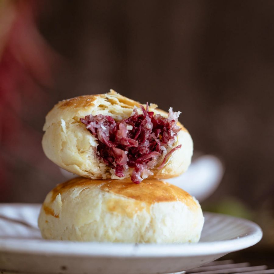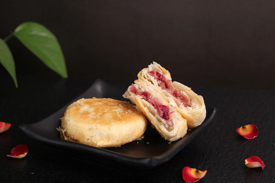 鲜花饼是一道以面粉、玫瑰,玉兰、菊花等为主要原料的小吃。是一款以云南特有的食用玫瑰花入料的酥饼,是具有云南特色的云南经典点心代表。鲜花饼在云南当地烘焙品牌均有销售。每年4月,鲜花饼的上市早已成为当地人民的共同期待,排着长队等待购买新鲜上市的鲜花饼在当地早已司空见惯。