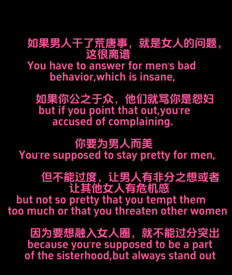 还让我觉得有点遗憾的是,在芭比走入现实世界寻找到那个女孩时,女孩的话真的很尖锐,包括但不限于女孩说芭比就是法西斯等,但在后续影片中其实没太能完全展示出来她自己的观点,而是将后续的高光给到了小女孩的母亲,就是妈妈说“你可以瘦,但不能太瘦…”,那一整大段,其实这些观点在我本人看来并不新颖(这种观点在前几年就流行过了),包括后来,女孩的妈妈一个一个反洗脑芭比乐园里的众多芭比,那些话让所那些话让所有的芭比们又重新清醒并团结起来,但针对于现实世界来说,这个方法并不可取,在父权制根深蒂固的今天,无数女性已然为父权制付出了太多的代价和血汗。