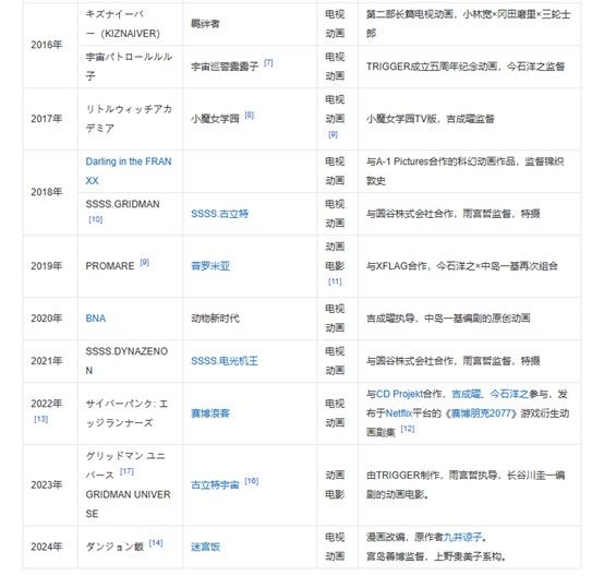 日本的一家进行动画企划和制作的公司TRIGGER,日本新晋的一家进行动画企划和制作的公司。 [1]由从著名动画公司GAINAX退社的三名核心人员大冢雅彦、今石洋之、舛本和也三人于2011年8月22日成立。 [2]