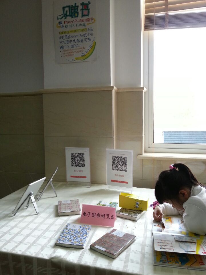 通过小记者的采访我们知道,相比DIY包装创意设计制作和小小手绘设计师来说,他们的活动在体验馆的三楼,非常宁静安逸,应该说在所有体能项目中并不是最突出的。可是通过今天半天的体验,人气还是非常旺,不同年龄段的都有,幼儿园、小学、中学的同学都积极体验参加了。而且书吧的造型也是精心设计过的,轻柔的音乐、图书搭建的造型设计、电子阅读器等等,立求为参观的小朋友们营造出一种书香墨飘的读书氛围。